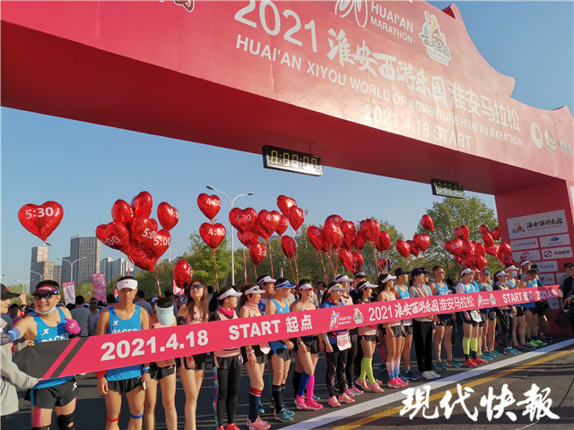 (記者 李子璇 文/攝)42.195公里“醉美”賽道令人心曠神怡,15000名各地跑友同場(chǎng)釋放運(yùn)動(dòng)激情,2200多年的運(yùn)河古城煥發(fā)出時(shí)尚氣息與發(fā)展活力……4月18日7時(shí)30分,以“犇跑淮安,幸福平安”為主題,以“運(yùn)河三千里,醉美是淮安”為口號(hào)的2021淮安西游樂(lè)園淮安馬拉松激情開(kāi)跑。開(kāi)跑前,萬(wàn)人高唱國(guó)歌,起點(diǎn)附近人聲鼎沸,現(xiàn)場(chǎng)熱情四射,不斷傳來(lái)掌聲和吶喊聲。