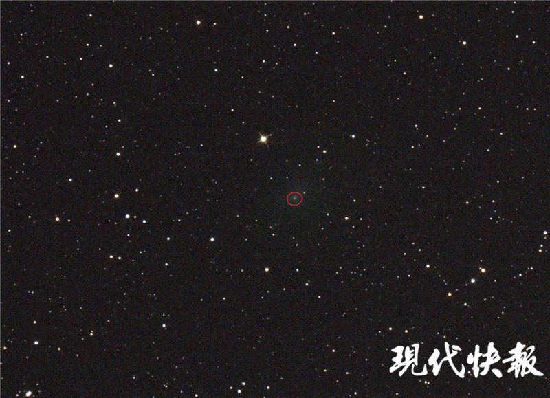 南京天文愛好者協(xié)會會員陽垈濤也拍到了這顆彗星。照片中,在其他亮星點綴之下,這顆彗星并不容易一眼被看見。但仔細一看,又能立刻發(fā)現(xiàn)它的與眾不同:看起來呈彌散狀,比較模糊不清,并發(fā)出淡綠色的光。