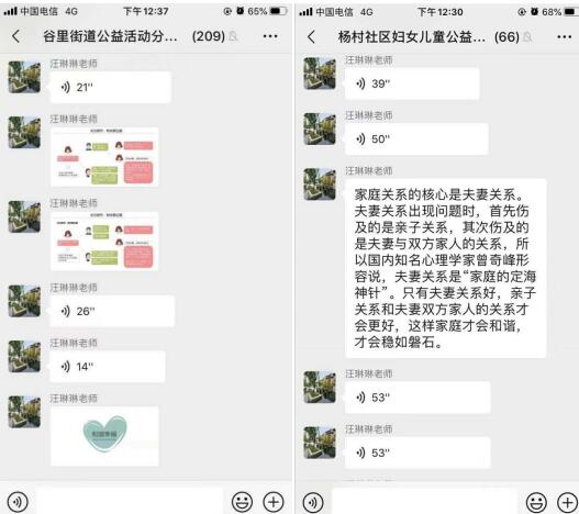 本次課程通過語音、圖片、文章、視頻相結(jié)合的方式在線與大家進(jìn)行講解,著重介紹了夫妻關(guān)系在整個(gè)家庭中的重要性,圍繞如何經(jīng)營(yíng)和諧婚姻關(guān)系、如何處理家庭關(guān)系沖突、建立婚姻心理健康等方面進(jìn)行講解,引導(dǎo)居民正確處理好婚姻、家庭關(guān)系,學(xué)會(huì)在生活中互相信任、理解、包容和尊重對(duì)方。汪老師通過發(fā)生在身邊的案例和大家一一分析矛盾產(chǎn)生原因、解決的辦法以及今后生活中應(yīng)該如何經(jīng)營(yíng)家庭關(guān)系等方面進(jìn)行講解,用通俗易懂的方式幫大家了解婚姻家庭的經(jīng)營(yíng)之道。