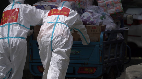 青年突擊隊(duì)成員搬運(yùn)物資