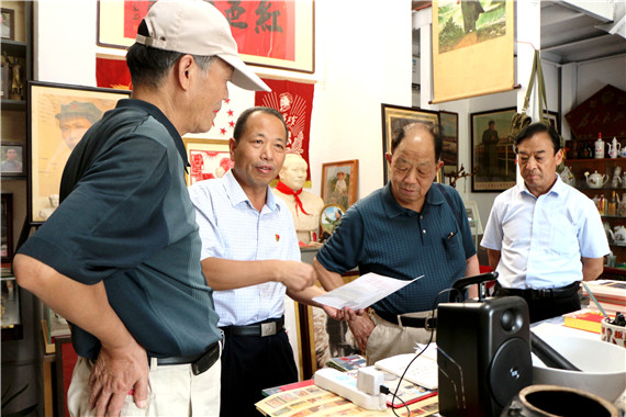 魏方剛送走一批參觀者,又迎來了邳州市原政協(xié)副主席、邳州文化研究會(huì)名譽(yù)主席劉彤、邳州市原政協(xié)副主席、邳州文化研究會(huì)常務(wù)副會(huì)長(zhǎng)劉漢超、邳州市文化研究會(huì)副會(huì)長(zhǎng)孫宜方、邳州市環(huán)保局原副局長(zhǎng)張守軍、邳州文化研究會(huì)理事曹兆民等邳州市老領(lǐng)導(dǎo)和文化研究人員前來考察。劉彤等老領(lǐng)導(dǎo)和紅色文化研究人員參觀后,被魏方一個(gè)普通的工作人員,幾十年如一日,熱愛紅色文化、宣傳紅色文化,自費(fèi)投資近百萬元興辦紅色文化館的精神所感動(dòng),他們當(dāng)即商定,這期邳州文化刊物《邳州文化》拿出一定版面,重點(diǎn)宣傳介紹邳州紅色文化收藏館,宣傳紅色藏品、展現(xiàn)百年黨史。
