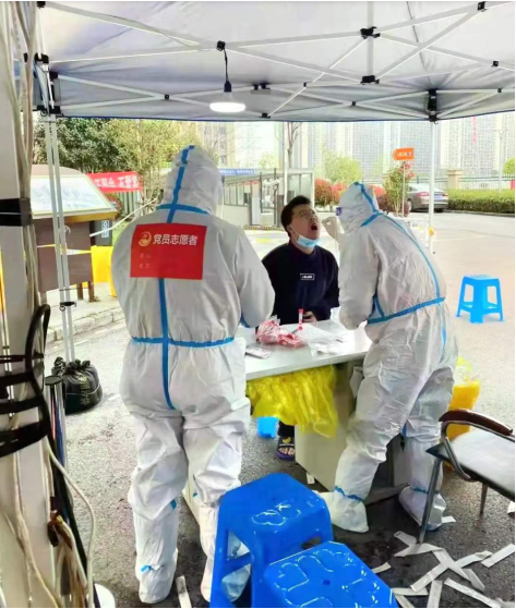 3月19日下午,建行句容支行接到句容市委組織部要求增援寶華的通知后,在全行公開招募志愿者,支行營(yíng)業(yè)室湯駿第一時(shí)間主動(dòng)報(bào)名,參與到核算檢測(cè)工作中。其實(shí),湯駿作為黨員和退伍軍人,他已經(jīng)不是第一次參加疫情防控志愿者行動(dòng)了,早在2020年疫情爆發(fā)時(shí),他就參加了當(dāng)?shù)卮逦瘯?huì)的志愿者行動(dòng)。他僅用了1個(gè)小時(shí)的準(zhǔn)備時(shí)間,當(dāng)天下午四點(diǎn)就趕到寶華抗疫第一線!