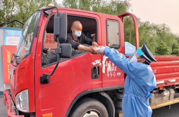 溧蕪高速高淳出口來(lái)寧查驗(yàn)服務(wù)點(diǎn),高淳區(qū)交通運(yùn)輸局執(zhí)法人員為貨車司機(jī)送上愛(ài)心物資。通訊員 宋端平 南京日?qǐng)?bào)/紫金山新聞?dòng)浾?徐琦 攝