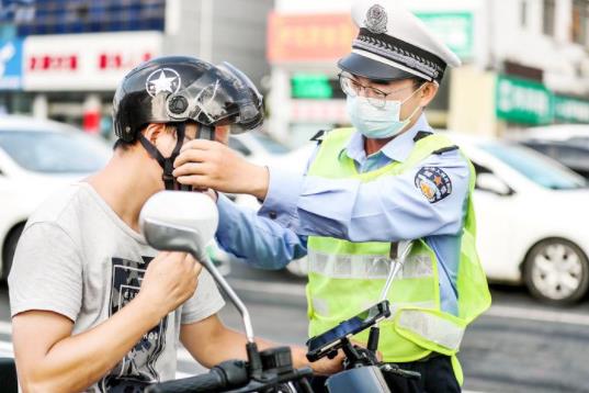 近期,天氣炎熱,記者在街頭發(fā)現(xiàn),不少電動車駕駛者不佩戴頭盔,存在安全隱患。7月19日,交警在淮陰區(qū)對未佩戴頭盔的電動車駕駛者進行教育與引導(dǎo),增強市民交通安全意識。融媒體記者 趙啟瑞 通訊員 劉須連