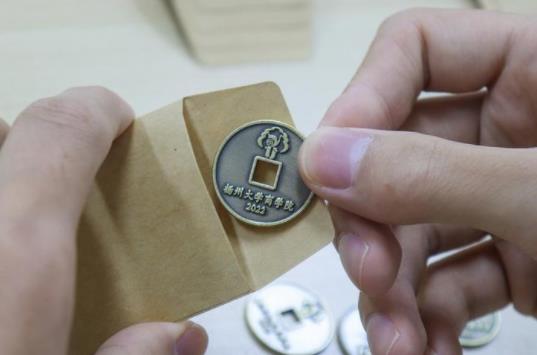 “這枚裝在盲袋里的‘銅錢’,可以制作成精美的掛墜,這份禮物意義十足,它時(shí)時(shí)提醒我們要學(xué)習(xí)著名實(shí)業(yè)家張謇精神。”今年,揚(yáng)州大學(xué)商學(xué)院用盲袋的形式給新生“送錢”,輔導(dǎo)員沈玉琦表示,這份禮物并不是真正意義上的錢,而是造型獨(dú)特、內(nèi)涵豐富的商院定制版“銅錢”。