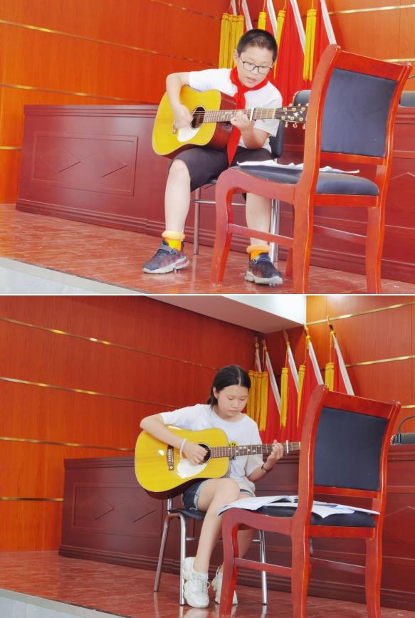 現(xiàn)場還有兩位小朋友分別帶來了自己心愛的吉他,彈奏起清脆的琴音,邊彈邊唱,悠揚(yáng)動(dòng)聽,展示出青春的色彩。除此之外,詩歌朗誦、歌曲演唱,不同的才藝輪番上演,推動(dòng)著整場的氛圍熱鬧非凡。