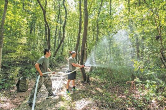 防火救援,補(bǔ)充水源是關(guān)鍵。在惠山北坡,森林消防隊(duì)員滿頭大汗地將150米長的水帶鋪設(shè)至一處蓄水池,通過山下的高揚(yáng)程水泵源源不斷給蓄水池加水。“由于降雨量減少,蓄水池?zé)o法自主蓄水,必須人工加水,確保蓄水池水量保持在90%以上。”山北街道林業(yè)管理站站長羅星說,今年的森林防滅火任務(wù)尤為艱巨,不僅要加大巡查力度,還要每天對道路兩側(cè)林區(qū)進(jìn)行灌溉,以增加濕度,降低森林火險等級,“這在前幾年是從未有過的”。