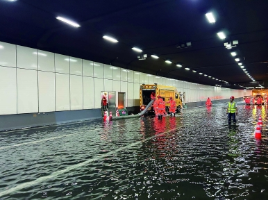 此次演練模擬了“南京市主城區(qū)突發(fā)極端強降雨,鼓樓區(qū)草場門隧道出現(xiàn)澇水倒灌,產(chǎn)生的大量積水致使隧道內部受淹、行駛車輛拋錨、人員乘客受困”的場景。面對嚴峻險情,市城建集團隧橋公司迅速啟動應急預案并聯(lián)合相關部門立即開展救援工作,成功地進行了“擋水板對隧道入口阻水擋水”“隧道、泵房及電氣設備巡視巡查”“迅速排除積水”“開展隧道周邊交通管制”“對被困人員開展醫(yī)療搶救”等科目的實戰(zhàn)演練。
