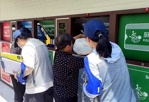 太平北苑小區(qū)屬于江寧第一批農(nóng)民拆遷安置小區(qū),共59棟,206個單元,3000多戶,居住人口約10000人。喜鵲林志愿團隊經(jīng)充分調(diào)研,于7月3日撤銷小區(qū)50個垃圾臨時投放點,改設(shè)集中投放點共18個,每個投放點配置一位指導(dǎo)員,引導(dǎo)居民養(yǎng)成垃圾分類習慣。