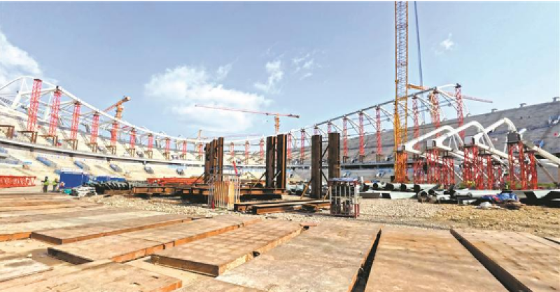 “在場(chǎng)地中央將鋼桁架拼裝好,緊固上漆后,整體吊裝,安裝到體育場(chǎng)外圈,航拍鏡頭中,體育場(chǎng)外圍一圈白色的膜骨架就是這樣一節(jié)節(jié)拼裝起來(lái)的。”奧體中心二期項(xiàng)目負(fù)責(zé)人介紹。昨早,記者走進(jìn)無(wú)錫奧體中心主體育場(chǎng)工地,巨大的白色三角鋼桁架格外引人注目,工人們正在場(chǎng)地上忙碌著,“節(jié)前施工至膜骨架鋼結(jié)構(gòu)吊裝,節(jié)后復(fù)工正抓緊進(jìn)行機(jī)械設(shè)備檢查、材料準(zhǔn)備、人員安全教育,逐步向滿產(chǎn)進(jìn)發(fā)?!?/p>