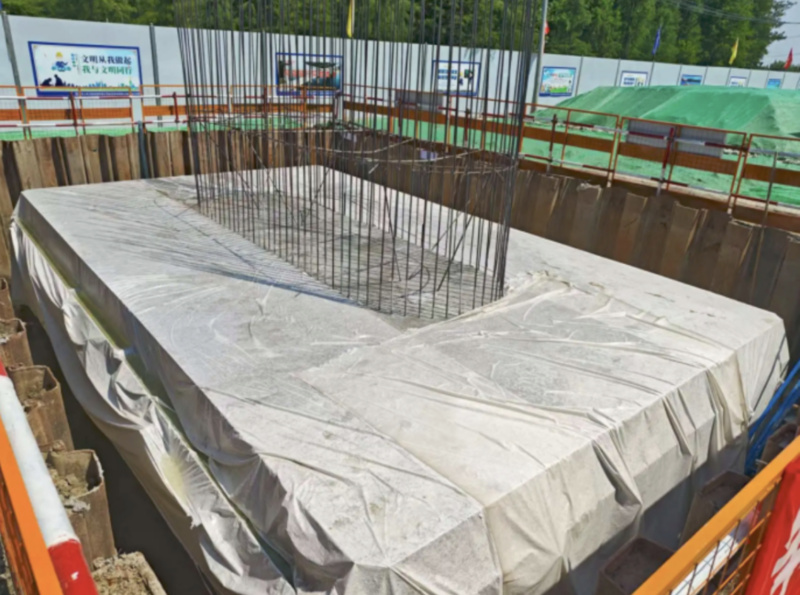 鹽泰錫常宜鐵路泰州段首個(gè)承臺(tái)澆筑完成