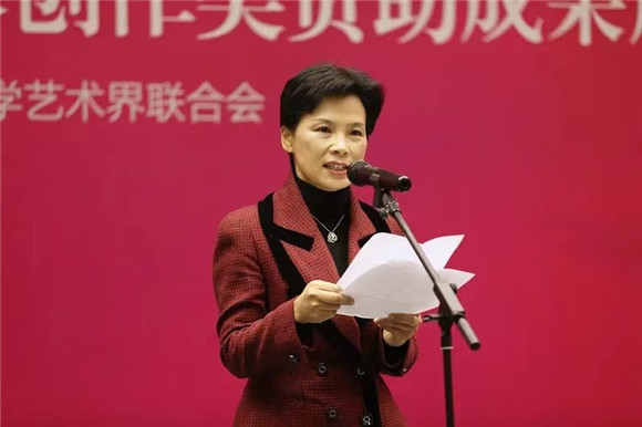 南京市文旅局副局長夏軍代表南京市文旅局發(fā)表講話,她在講話中介紹了南京市藝術(shù)基金近年來的發(fā)展,她指出文化是一種軟實力,它與經(jīng)濟發(fā)展等硬實力處于同樣重要的地位。此次展覽以“妙筆墨韻繪小康”為主題,意義在于檢閱我市美術(shù)界的最新成就,突出反映廣大美術(shù)家深入生活、扎根人民,用激情畫筆描繪中國色彩、時代風(fēng)貌和自然之美、生活之美、人文之美的創(chuàng)作實力和水平。鼓勵各位藝術(shù)家繼續(xù)創(chuàng)作出更多的藝術(shù)精品奉獻人民。而后此次成果展獲獎作者、南京書畫院青年書畫院畫家黃梅凡作為代表發(fā)言,她感謝主辦單位和承辦單位提供平臺,給予參展藝術(shù)家表達自我和學(xué)習(xí)的機會。她從創(chuàng)作者的角度闡述了對主題創(chuàng)作的思考與心得,得到了中肯的意見,表示今后將與各位同道一起創(chuàng)作出更多精品力作,為南京書畫藝術(shù)的建設(shè)添磚加瓦。最后,紀(jì)增龍副部長、夏軍副局長、張俊副主席向各位獲獎作者頒獎,并合影留念。開幕式結(jié)束后,與會領(lǐng)導(dǎo)嘉賓共同參觀展覽。