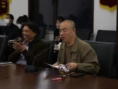 新聞發(fā)布會暨研討會由劉春杰館長主持,在輕松、活潑的氣氛中,到場嘉賓有序落座。劉春杰館長與大家寒暄后,誠摯地表達(dá)了對此次展覽的高度重視:“楊明義是一位樸素的藝術(shù)家,一位親身經(jīng)歷繁雜社會變遷、時代交替、卻仍然樸素的藝術(shù)家。見其畫如見其人——他對待藝術(shù)充滿激情,對待后生平易近人。”隨后楊明義受邀致辭。