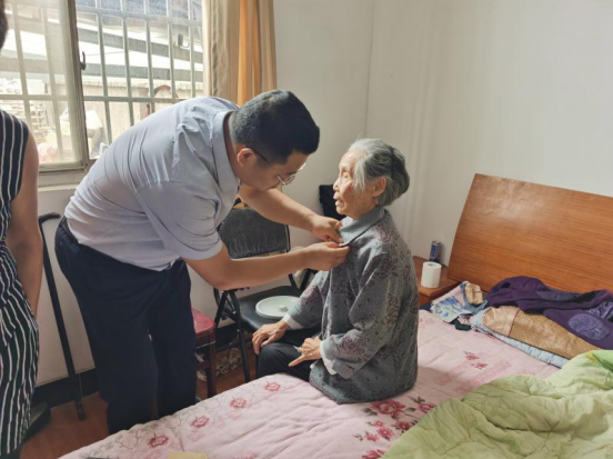 佩戴黨徽是一種榮耀,更是一種責(zé)任。在走訪慰問中,社區(qū)工作人員還將鮮紅的黨徽佩戴在老黨員們的胸前,佩戴上黨徽的那一刻起老黨員的眼眶瞬間變得濕潤,嘴里一直說感謝,感謝黨的關(guān)懷,感謝社區(qū)的關(guān)心,場面溫馨感人。