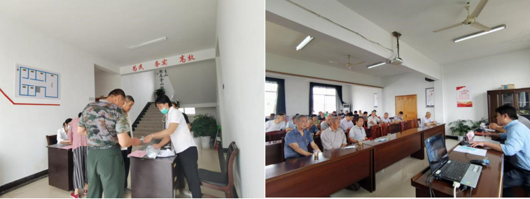 阜莊村黨總支根據(jù)片區(qū)分布情況,在會(huì)議當(dāng)天為了更好地服務(wù)黨員群眾及確保高齡黨員參會(huì)安全,安排七名志愿者分別接送行動(dòng)不便的黨員和老黨員前來參會(huì)。并在會(huì)議簽到前,安排工作人員為參會(huì)黨員提供黨徽及口罩,宣傳疫情期間的個(gè)人防護(hù)安全知識(shí)。從細(xì)微處出發(fā),處處彰顯阜莊村兩委黨員對(duì)黨員群眾的關(guān)心與愛護(hù)。
