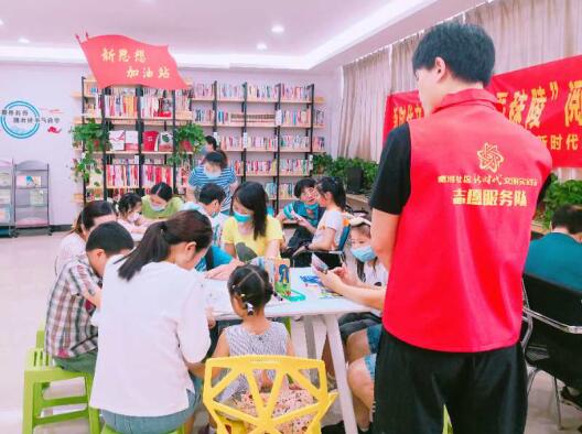 《雞毛信》、《地雷戰(zhàn)》、《地道戰(zhàn)》、《閃閃的紅星》、《小兵張嘎》、《狼牙山五壯士》、《紅色娘子軍》等等一共有20冊的紅色經(jīng)典故事。“這里的每一本故事都是太經(jīng)典了”“小人書上的畫面,對人物描繪傳神到位,比現(xiàn)在的卡通漫畫好看多了!“家長們一邊愛不釋手地翻閱這些小人書一邊說道,兒時的記憶立刻涌上心頭。隨后,家長們帶著孩子一起閱讀起來,孩子們看著圖片也非常地入迷。志愿者們讓小朋友現(xiàn)場進行互動分享閱讀的故事,讓這些紅色經(jīng)典深深埋藏在他們的心中。閱讀后,家長們陪同孩子一起進入“繪黨旗添光彩”的繪畫活動環(huán)節(jié),用手中的畫筆描繪出黨旗、天安門、和平鴿、生日蛋糕等為黨的99周年生日送去最美好的祝福。