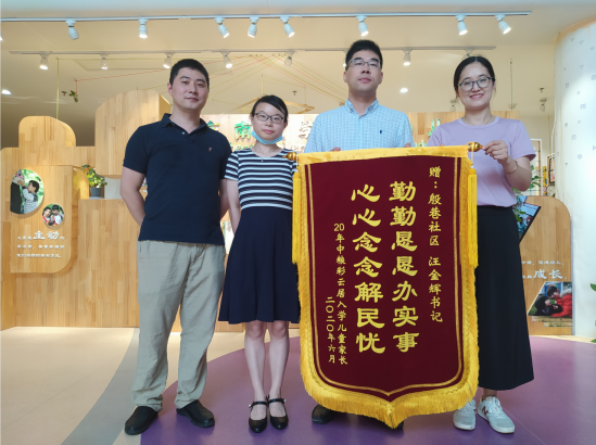 “黨的好干部,百姓貼心人。”轄區(qū)居民蔣莉等幾位家長聲聲道謝,溢于言表。接過錦旗后,社區(qū)汪書記說:“社區(qū)本來就是為居民服務(wù)的,無論誰遇到困難,我們都會(huì)盡全力幫助他,這也是我們應(yīng)該做的,能得到你們的肯定,是對(duì)我們莫大的鼓舞。”贈(zèng)送錦旗的行為讓汪書記非常感動(dòng),在他看來,聯(lián)系安排適齡兒童入園等方面的工作僅僅是盡了自己的職責(zé),沒想到,受到幫助的居民卻把這份關(guān)心牢記在心。這讓社區(qū)的所有工作人員都感到自己身上責(zé)任之重,只有讓“小社區(qū) 大服務(wù)”的理念真正實(shí)現(xiàn),才能讓黨和政府的關(guān)懷在居民心中生根開花。汪書記表示,今后一定要更加周到、熱情地為居民服務(wù),把工作做得更好,讓群眾滿意,做居民的貼心人!全面推進(jìn)建設(shè)生活美好、穩(wěn)定和諧、服務(wù)創(chuàng)新的宜居社區(qū),為建設(shè)“和諧殷巷”貢獻(xiàn)力量!