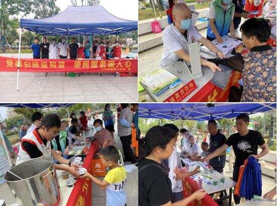 黨建手拉手,服務(wù)惠民生,固長效。盛江社區(qū)以“黨建一盤棋”的思路發(fā)揮整合各類資源,真正做到為民做好事、辦實(shí)事?;顒蝇F(xiàn)場,工作人員向社區(qū)居民宣傳普及法律知識,提供免費(fèi)法律咨詢服務(wù)、計(jì)生政策咨詢、社會勞動保障咨詢等,并發(fā)放司法單頁、人口普查單頁、計(jì)生用品及社會保障材料。同時,黨員干部為轄區(qū)內(nèi)環(huán)衛(wèi)工人、綠化工人、安保人員、交警、快遞員及居民群眾送去綠豆湯,以此感謝他們用辛勤的勞動為城市建設(shè)作出的貢獻(xiàn),把清涼送到崗位,把關(guān)愛送進(jìn)城市建設(shè)者們的心坎里?;顒蝇F(xiàn)場,還有醫(yī)務(wù)人員為居民測量血壓,對血壓偏高的居民提出科學(xué)飲食建議,提醒他們要改變不良生活方式。更有社區(qū)志愿者主動請纓為轄區(qū)居民免費(fèi)理發(fā),“咱們政府想著老百姓,在家門口就能享受免費(fèi)理發(fā),真是太好了!”王阿姨高興地說道。