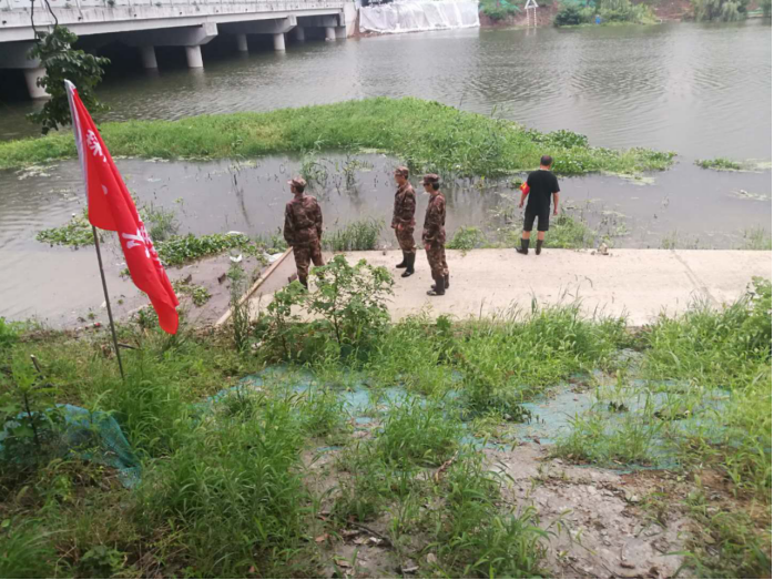 平時(shí)為民,戰(zhàn)時(shí)為兵。雨情就是命令,未來一周,陰雨不斷,防汛如泰山壓頂,7月12日晚,在江寧區(qū)秣陵街道殷巷社區(qū)民兵營營長張武帶領(lǐng)下,殷巷社區(qū)民兵隊(duì)伍冒雨赴一線、走現(xiàn)場,來到殷巷社區(qū)的圩堤上參與防汛工作,對(duì)轄區(qū)內(nèi)低洼積水地方進(jìn)行排查疏通,確保安全度汛。