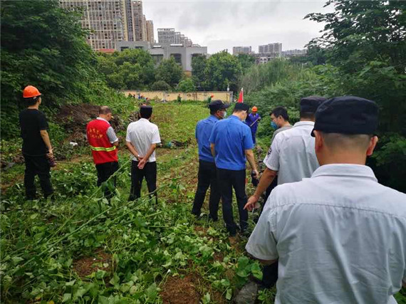 在十里長溝沿線巡查中,社區(qū)網(wǎng)格員、老黨員工作室成員戈年銅發(fā)現(xiàn)沿線有居民私自開墾綠地種植蔬菜,立即上報堯化街道綜合執(zhí)法大隊。隨即綜合執(zhí)法大隊安排隊員,聯(lián)合社區(qū)對亂墾亂種的菜地進行全面清理,保障十里長溝沿線生態(tài)環(huán)境。隨后,戈年銅向居民宣傳私自開墾對生態(tài)環(huán)境危害以及相關(guān)政策要求,希望他們能夠以此為戒,加強約束和監(jiān)督,參與志愿宣傳隊伍中來,形成全民共同參與維護十里長溝青山綠水的良好氛圍。