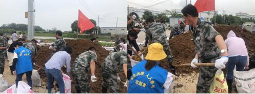 防內(nèi)澇,助防汛。針對此次棲霞街道地處長江中下游沿岸,長江支流九鄉(xiāng)河石埠橋糧庫段河岸沿線水位告急,在石江線低洼處九鄉(xiāng)河河水已漫過河提,轄區(qū)內(nèi)出現(xiàn)多處低洼點出現(xiàn)積水等情況,石埠橋村城治委公眾委員、志愿者們主動請戰(zhàn),沖鋒在防汛一線,全力配合街道防汛搶險突擊隊,手拿鐵鍬,一下又一下將泥土裝滿沙袋,并扛到河堤旁進(jìn)行加固,同時志愿者們積極采取多項措施,加強防汛減災(zāi)工作,為糧庫和居民出行筑牢“安全堤”和“防汛墻”。