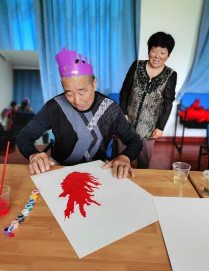 殘疾朋友們分享蛋糕、同舉杯、憶往昔、話家常,飽經(jīng)歲月洗禮的褶皺在笑容的映襯下宛如一朵朵燦爛的花。社區(qū)工作人員還為他們精心設計了一系列活動,包括吹畫、文藝表演、生活感悟分享、說出愿望等。今年91歲的殘疾人劉正英奶奶開玩笑地說:“我一定要開開心心過好每一天,養(yǎng)好身體努力活到一百歲,爭取過百歲生日!”聽著溫馨的歌聲,吃著甜美的蛋糕,大家都高興得像個孩子。