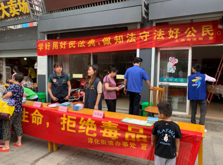 為進(jìn)一步提升轄區(qū)居民的學(xué)法、懂法、用法意識(shí),增強(qiáng)居民法治觀念,7月23日,江寧區(qū)淳化街道土橋社區(qū)、綜治辦、司法所、禁毒辦共同在土橋農(nóng)貿(mào)市場(chǎng)開(kāi)展法制宣傳活動(dòng)。