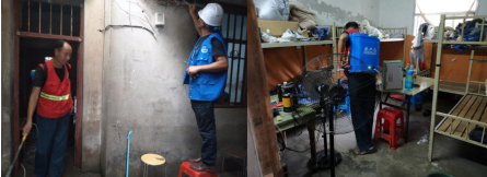 防汛齊上陣,逆行顯擔(dān)當(dāng)。此次活動(dòng)中,電瓷社區(qū)針對(duì)電瓷新村未拆遷戶部分家庭有淹水情況,組織志愿者們對(duì)轄區(qū)小區(qū)進(jìn)行了全面巡查,志愿者們向居民群眾介紹雨情和近期天氣情況,宣講防災(zāi)減災(zāi)知識(shí),提醒廣大居民群眾要做好防汛防澇準(zhǔn)備,同時(shí)志愿者們充分發(fā)揮“不怕臟,不怕累”的精神,到轄區(qū)笆斗西里152號(hào)淹水居民家中送沙袋,幫助他們整理家中物品,進(jìn)行防病毒消殺,以及安全用電檢查,提醒居民增強(qiáng)群眾防汛抗災(zāi)的防范意識(shí)和安全意識(shí),為守護(hù)家園貢獻(xiàn)力量。