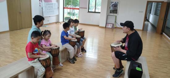 “非洲鼓”是西非曼丁文化的代表性樂器。傳統(tǒng)上,“非洲鼓”是徒手演奏,主要有低、中、高三個音,演奏與特定生活場景相關(guān)的鼓曲,來給舞者和歌手伴奏?,F(xiàn)在“非洲鼓”已經(jīng)傳播到世界各地,在不同的音樂、培訓(xùn)領(lǐng)域發(fā)揮著它獨(dú)特的價值。7月30日,南京市江寧區(qū)東山街道東山社區(qū)新時代文明實(shí)踐站聯(lián)合南京泰德文化藝術(shù)培訓(xùn)中心開展“非洲鼓”活動,志愿者老師教孩子們學(xué)習(xí)“非洲鼓”。