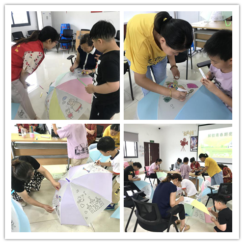 為使今天的活動(dòng)更有趣味,志愿者還為大家準(zhǔn)備了一場(chǎng)手工涂鴉“保護(hù)傘”制作親子活動(dòng)。涂鴉原本是一項(xiàng)動(dòng)手性很強(qiáng)的活動(dòng),需要極大的耐心和繪畫功底。老師一番布置后,各位家長(zhǎng)腦洞大開,躍躍欲試,精心地為自己的作品涂上精美的顏色,不一會(huì)兒,各自的傘面都繪上了精美的圖案。雖然沒有經(jīng)過專業(yè)培訓(xùn),家長(zhǎng)們還是豪情滿滿,興致勃勃,一一展示自己的作品,把此次活動(dòng)推向了高潮。