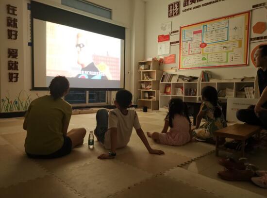 孩子們聽說要看電影都很開心,早早就來到活動室等候,志愿者則忙活著為兒童們分發(fā)零食。電影《超人總動員》準時開始,影片告訴孩子們,每個人的命運都掌握在自己的手中,只要敢于摒棄世俗的成見,勇敢奔向前方,你終會贏得人心。很快電影就在孩子們的依依不舍中結(jié)束了。孩子們在整個觀影過程中都全神貫注,深深地被故事情節(jié)所吸引。影片結(jié)束后很多小朋友都沉浸在其中相互討論動畫人物的勇敢和真誠?;顒拥淖詈?,志愿者為小朋友們合影留戀,希望定格這最美好的一瞬間。