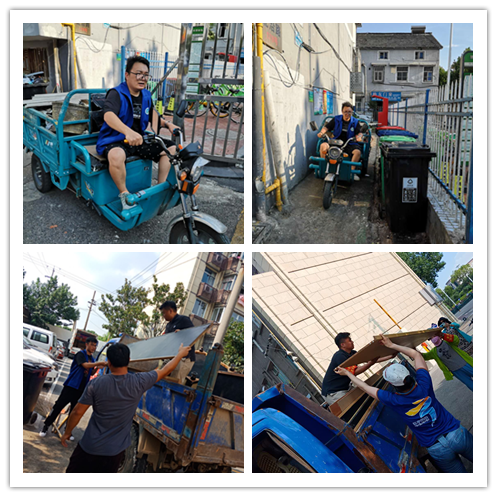 活動(dòng)現(xiàn)場(chǎng),網(wǎng)格員們集中前往小區(qū)內(nèi)部,他們身穿藍(lán)色馬夾,手拿清潔工具向樓道、道路兩旁的生活雜物、僵尸車、亂停亂放的電動(dòng)車“下戰(zhàn)書”,并對(duì)“不文明”現(xiàn)象進(jìn)行地毯式排查,集中清理了小區(qū)的衛(wèi)生死角,為文明城市揮灑汗水,為生態(tài)家園保駕護(hù)航。其中,網(wǎng)格員謝春林負(fù)責(zé)小區(qū)清雜工作,在清雜過程中,不小心碰破了頭,他依舊帶傷上陣,上午掛水,下午就繼續(xù)投入到小區(qū)拖垃圾的行列中。他在卡車上揮灑汗水,并帶頭講解垃圾分類的重要意義,要求每位居民積極踐行垃圾分類我先行,帶動(dòng)更多的家庭自覺參與到垃圾分類的行動(dòng)中來,共創(chuàng)綠色環(huán)保的居住環(huán)境。在整治過程中,由于天氣炎熱,不少工作人員身體抱恙,從沒學(xué)過電動(dòng)車網(wǎng)格員朱天聰主動(dòng)請(qǐng)纓,頂名替身,騎著電動(dòng)車運(yùn)送垃圾。雖然天氣又悶又熱,大家個(gè)個(gè)干勁十足,垃圾桶邊、綠地里、樓道里,都有網(wǎng)格員忙碌的身影。網(wǎng)格員們的拼搏精神,受到了居民的贊揚(yáng)。