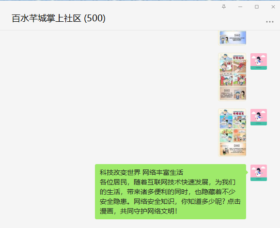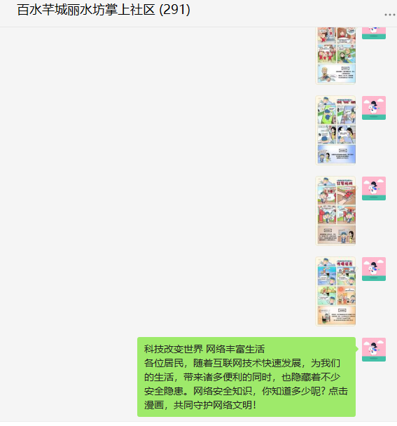 網(wǎng)絡(luò)是把雙刃劍,在迅速發(fā)展豐富居民生活的同時,也帶來諸多安全隱患。為了讓廣大居民增強網(wǎng)絡(luò)安全意識和自我保護的能力,南京市棲霞區(qū)馬群街道百水芊城社區(qū)運用“掌上云社區(qū)”,傳播“網(wǎng)絡(luò)安全”宣傳漫畫,共同守護網(wǎng)絡(luò)文明。