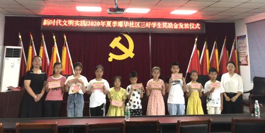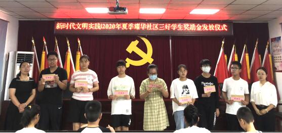 首先社區(qū)向“三好學生”們以及辛勤付出的學生家長們表示祝賀。同時也對“三好學生”們提出希望,他表示把新學期作為人生的新起點,志存高遠,德才并重。學會感恩,報效祖國、報效社會、報效養(yǎng)育你們父老鄉(xiāng)親。利用寒暑假多參加社區(qū)組織的各項活動,用學到的知識影響社區(qū)居民,以提高社區(qū)整體文化素養(yǎng)。