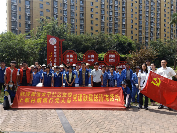 烈日當(dāng)空,熱浪襲人,為了全面推進黨建共建工作,做好高溫期間戶外工作者的防暑降溫工作,8月31日,南京市江寧區(qū)秣陵街道太平社區(qū)黨委聯(lián)合上海銀行南京分行江寧上銀村鎮(zhèn)黨支部組織黨員志愿者在社區(qū)新時代文明實踐站開展了“黨建引領(lǐng)聚合力 溫馨夏日送清涼”活動。