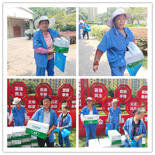 活動中,黨員志愿者們?yōu)榄h(huán)衛(wèi)保潔人員送去了一箱箱純凈水,附近的戶外工作者聽聞社區(qū)發(fā)放純凈水,爭先恐后地向發(fā)放點趕來,都想要喝一瓶清爽可口的純凈水解解暑,不一會兒,整箱的純凈水就見底了,看著戶外工作者滿滿的幸福溢于言表,黨員志愿者們也頓感涼爽了許多,一瓶瓶普普通通的純凈水換來了一張張清甜的笑容,令人沁人心脾。環(huán)衛(wèi)工人劉師傅接過志愿者手中的純凈水,酣暢淋漓地豪飲了一番,一瓶下肚,又續(xù)一瓶,還不時地向志愿者感嘆道:“真好喝,社區(qū)領(lǐng)導(dǎo)太會為我們著想了,生活在太平社區(qū)真幸福啊!”