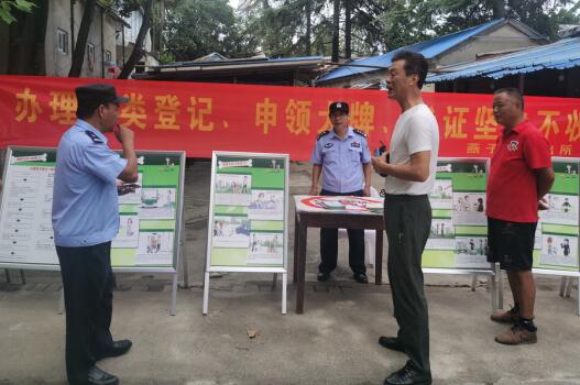 “阿姨,您家的狗狗有沒有登記過?狗證辦了嗎?要是沒有,您可以帶上這些相關(guān)資料到社區(qū)辦理犬類登記,申領(lǐng)犬牌……”近日,南京市棲霞區(qū)燕子磯街道石化村社區(qū)聯(lián)合轄區(qū)片警在網(wǎng)格內(nèi)開展“創(chuàng)建文明城市,做文明養(yǎng)犬人”文明養(yǎng)犬宣傳活動,引導(dǎo)居民辦理養(yǎng)犬許可證。
