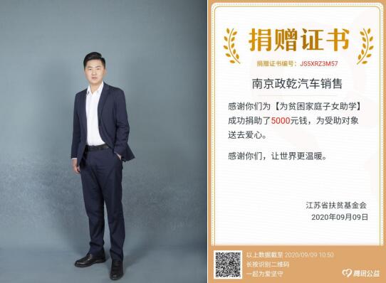 獻(xiàn)出一份愛(ài)心,托起一片希望。9月9日,政乾汽車銷售積極響應(yīng)江寧區(qū)東山街道龍西社區(qū)號(hào)召,組織參與“99公益日”愛(ài)心募捐活動(dòng),把愛(ài)帶到困難孩子們的心中,為他們點(diǎn)亮光明。