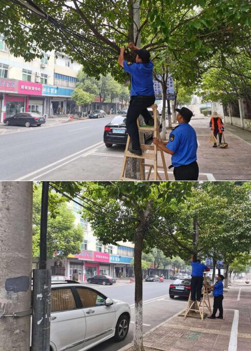 在日常巡查中發(fā)現(xiàn),靈順北路有幾束電線脫落懸掛在人行道上,給過(guò)往行人車輛帶來(lái)不便。執(zhí)法隊(duì)員發(fā)現(xiàn)后,立即帶來(lái)扎帶、鉗子等工具,爬上人字梯,一點(diǎn)一點(diǎn)地將垂落電線收起,并對(duì)垂落的電線進(jìn)行了捆扎固定,維護(hù)了良好的集鎮(zhèn)秩序,保障了群眾生命安全。