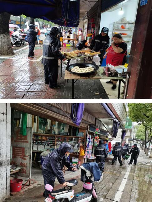 陰雨天氣在一些商戶和流動(dòng)攤販眼中,是一個(gè)好“機(jī)會(huì)”、好“時(shí)機(jī)”,是違規(guī)違章現(xiàn)象的“高峰期”,針對(duì)這一心理,執(zhí)法隊(duì)員頭頂細(xì)雨,穿梭在大街小巷,逐街逐戶對(duì)轄區(qū)內(nèi)主次干道、背街小巷、農(nóng)貿(mào)市場(chǎng)等重點(diǎn)區(qū)域路段進(jìn)行“地毯式”巡查整治,主要對(duì)沿街商戶經(jīng)營(yíng)秩序進(jìn)行規(guī)范,對(duì)商戶門前亂堆放進(jìn)行清理,對(duì)亂停亂放非機(jī)動(dòng)車進(jìn)行整治,對(duì)違規(guī)占道經(jīng)營(yíng)進(jìn)行勸離,以實(shí)際行動(dòng)創(chuàng)“文明城”。