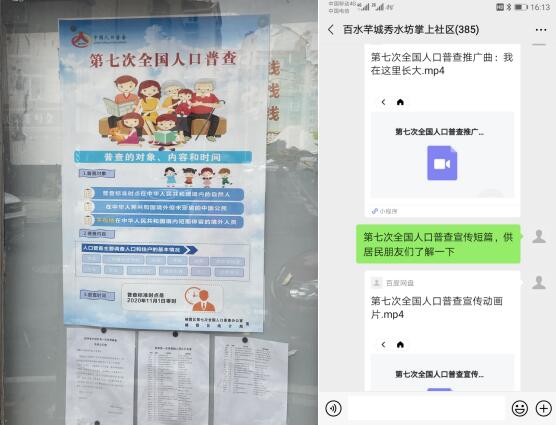 人口普查,惠及萬家。此次活動中,百水芊城社區(qū)工作人員首先在宣傳欄粘貼宣傳海報,使居民初步了解人口普查工作的開展時間、普查的對象及居民需要配合提供的信息。并且借助網(wǎng)格員入戶的契機(jī),向小區(qū)居民宣傳人口普查工作的意義,初步確認(rèn)小區(qū)居民居家時間,以方便后期普查員入戶。同時社區(qū)還運(yùn)用“掌上云”,在小區(qū)居民微信群里,不定期推送人口普查宣傳短片,努力將人口普查工作融入到小區(qū)居民生活中,提升小區(qū)居民的了解度,以提高小區(qū)居民后期的配合度。