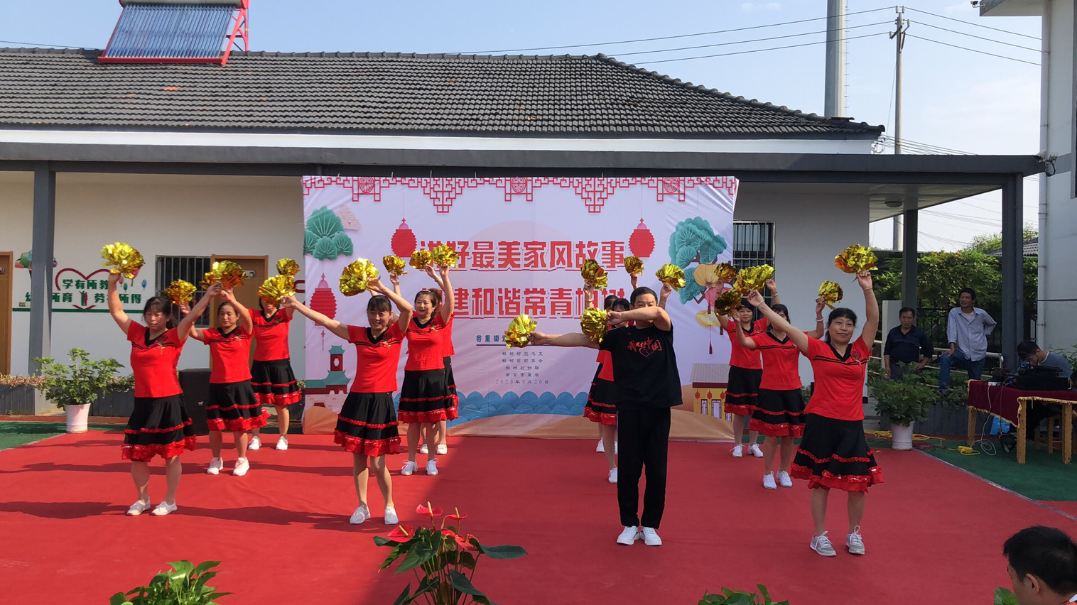 活動現(xiàn)場,除了最美家風頒獎儀式,還穿插了村民喜聞樂見的節(jié)目表演,詩朗誦《在親情的世界里》歌頌了父母恩情,歌曲《天下第一情》、《?;丶铱纯础穬墒捉?jīng)典老歌,連接起臺上、臺下互動,將活動現(xiàn)場推向高潮,廣場舞《中國大舞臺》舞出家國一體的新光彩。