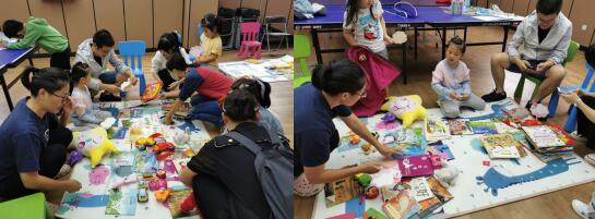 四十多分鐘的講座很快就結(jié)束了,在秋季跳蚤市場環(huán)節(jié)中,孩子們將自己的書籍、玩具拿過來互相交換、低價銷售,邊玩耍邊學習循環(huán)利用知識,并在溝通中不斷鍛煉自己的溝通交流能力。家長們則在一旁協(xié)助孩子們完成一次次的交易,不多干涉,并鼓勵孩子們主動去商量、去交換、去交朋友。琳瑯滿目的“市集”,培養(yǎng)了孩子們的溝通交流能力,促進社區(qū)青少年的身心健康。
