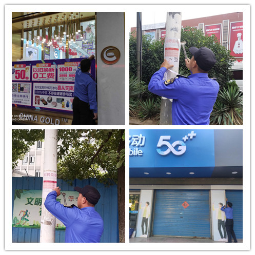 二、清理“亂貼亂畫(huà)”,保障環(huán)境秩序。電線桿、墻體、地面等區(qū)域小廣告、“牛皮癬”亂貼亂畫(huà)現(xiàn)象極易反復(fù),且大多存在于主次干道、背街小巷、農(nóng)貿(mào)市場(chǎng)等重點(diǎn)區(qū)域路段,涉及面較廣,流動(dòng)性較大。針對(duì)此情況,大隊(duì)組織專人開(kāi)展巡查,明確問(wèn)題易發(fā)點(diǎn),一方面利用鏟刀、刷子等工具協(xié)同清理,發(fā)現(xiàn)一處,整治一處,確保“全面覆蓋、不留死角”;另一方面加強(qiáng)與沿街商戶及周邊居民群眾的溝通交流,從源頭抓好教育引導(dǎo)工作,加大“回頭看”的力度,確保“常態(tài)長(zhǎng)效、不再反彈”。