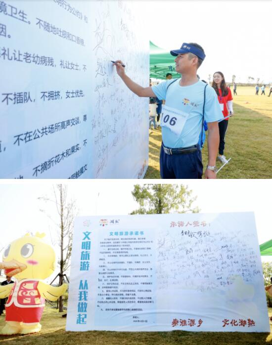 為進一步培育和踐行社會主義核心價值觀,倡導文明新風尚,宣傳文明旅游的觀念,在活動開始之前倡導了“文明旅游從我做起”主題宣傳活動,大家在文明墻上莊重地簽下自己的名字,簽名版上密密麻麻的名字見證了大家對爭做“最美湖熟人”的承諾,以自身行動為文明旅游、綠色出行代言。