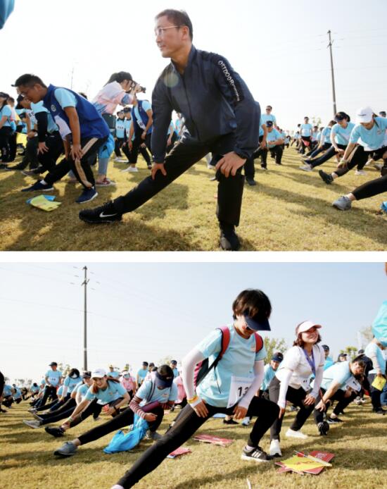 歡快的節(jié)奏、動感的旋律、優(yōu)美的舞步、整齊的動作……開場舞的精彩表演,瞬間點燃現(xiàn)場熱情如火的氛圍,也拉開了此次活動的序幕,湖熟街道近百余名干部群眾、數(shù)百名徒步愛好者齊聚錢家渡,在健身教練的帶領下,大家進行了5分鐘的跑前熱身運動,將身體調(diào)整至徒步行的最佳狀態(tài)。