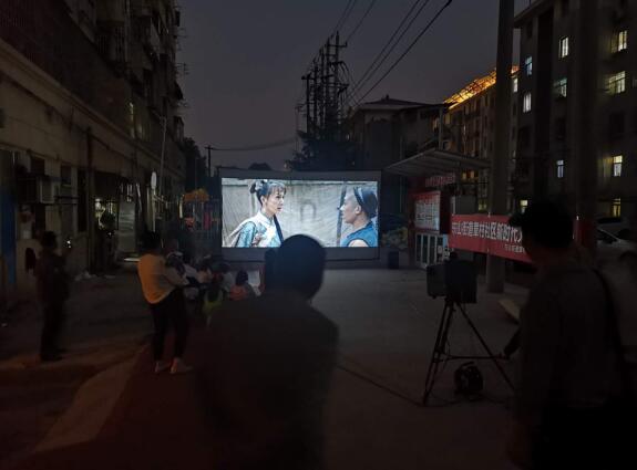 放映之前,社區(qū)網(wǎng)格員利用網(wǎng)格群及時(shí)通知各個(gè)居民小組的居民,得到了廣大居民的積極回應(yīng)?;顒又校娪胺庞酬?duì)的工作人員早早掛起了幕布,調(diào)試好設(shè)備,放起了音響。居民們也紛紛來到放映現(xiàn)場,等候著電影的開始。電影開始后,群眾越聚越多,還吸引不少過往群眾駐足觀看。石羊居民小區(qū)老年人口比較多,而這些老年人很少去電影,一位居民開心地說:“感謝黨和政府的關(guān)心,讓我們這些很少去電影院看電影的老年人也跟上了時(shí)代的步伐。”