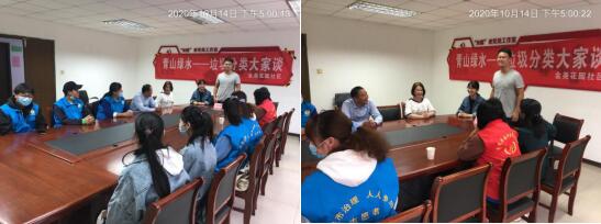 作為南京棲霞各大高校大學(xué)生社會實踐基地,一直與高校大學(xué)生保持密切聯(lián)系,為了聽取更多青年人不同的聲音,近日,南京市棲霞區(qū)堯化街道金堯花園社區(qū)以黨建帶團(tuán)建,社區(qū)高校聯(lián)建,特邀南京財經(jīng)大學(xué)法學(xué)院的青年大學(xué)生志愿者共同開展“青山綠水垃圾分類大家談”活動。街道公眾委員、社區(qū)城市志愿者、老黨員、全科社工共同參與座談。