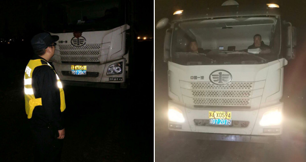 東陽社區(qū)連夜嚴查黑渣土車