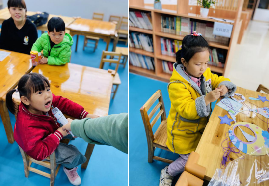聽故事、做手工。本次繪本故事分享會,志愿者首先帶領(lǐng)轄區(qū)內(nèi)兒童進(jìn)行“睡覺覺”手指謠暖身活動,鍛煉孩子們精細(xì)動作的發(fā)展的同時也增進(jìn)了親子間的互動。隨后,在繪本講讀環(huán)節(jié)中,志愿者帶來了繪本故事《晚安,貓頭鷹》,孩子們聚精會神,共同感受故事情節(jié),進(jìn)入到多姿多彩的閱讀世界中。“捕夢網(wǎng)源自18世紀(jì),印第安人會用它來捕獲美麗的夢幻……”,志愿者娓娓道來捕夢網(wǎng)的美麗傳說,并向大家詳細(xì)講解了制作捕夢網(wǎng)的每一個步驟。在家長和志愿者的指導(dǎo)下,孩子們認(rèn)真打造自己心中所想的捕夢網(wǎng)。從開始階段的繞線,到編織網(wǎng)、手工裝飾,每一個步驟都反復(fù)推敲。經(jīng)過齊心協(xié)力,最終獨特而美麗的夢幻捕夢網(wǎng)逐一成型。